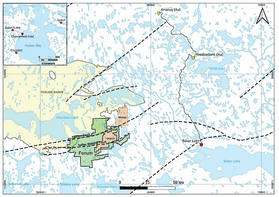 Toronto, ON., - Baselode Energy Corp. (“Baselode”) (TSXV: FIND; OTCQB: BSENF) and Forum Energy Metals Corp. (“Forum”, together with Baselode, the “Parties”) (TSXV: FMC; OTCQB: FDCFF) are pleased to announce that our drilling is underway on the Aberdeen Project (Figure 1).