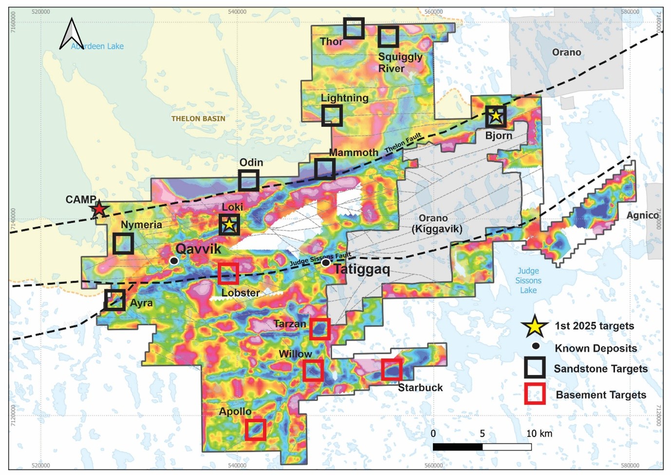 - Loki Grid: Drilling will follow up on prospective gravity target with strong clay alteration and elevated uranium (up to 30 ppm – 30x background) in the Thelon sandstone