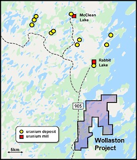 The Wollaston Uranium Project is located along the east margin of the Athabasca sandstone basin and boasts both road and power access, along with its close proximity to two uranium mills and ten mines/deposits within 35km of the property. |